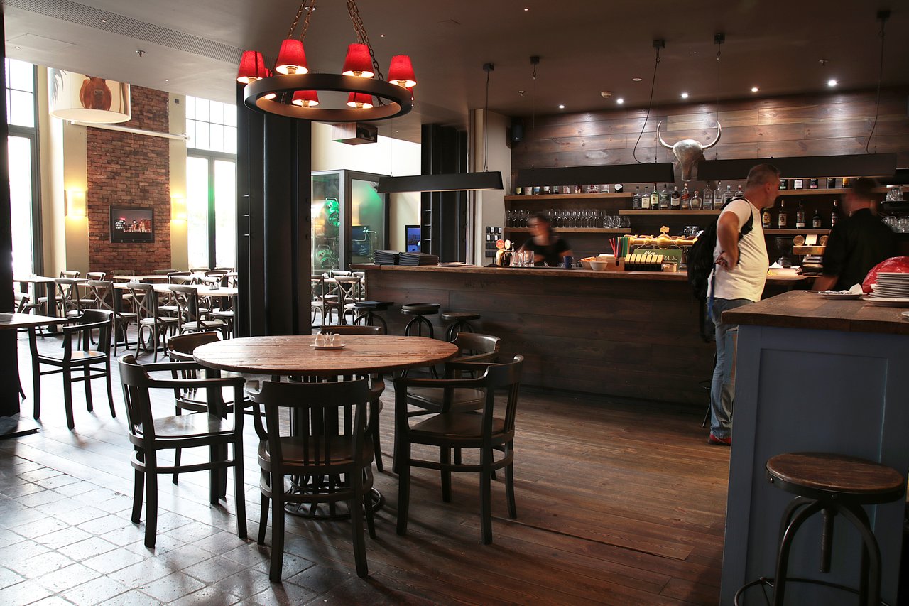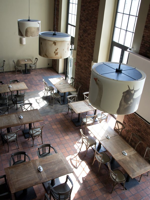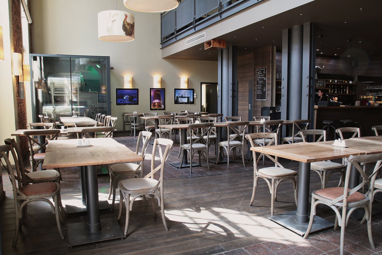 Das Restaurant befindet sich im Gebäude einer ehemaligen Stadtbrauerei aus dem Jahre 1895, deshalb kann man im Interieur einen leicht industriellen Unterton spüren. Die gegliederten, über zwei Stockwerke reichenden Fenster passen gut zu den unverkleideten Rohren an der Decke. Auf dem Fußboden wechseln sich Ziegelpflaster mit Holzbrettern ab. Den Architekten gelang es, einen zweistöckigen Raum zu entwerfen, wo sich zur Mittagszeit immer viele Menschen von den umliegenden Büros ansammeln. Abends herrscht hier hingegen eine private Atmosphäre.